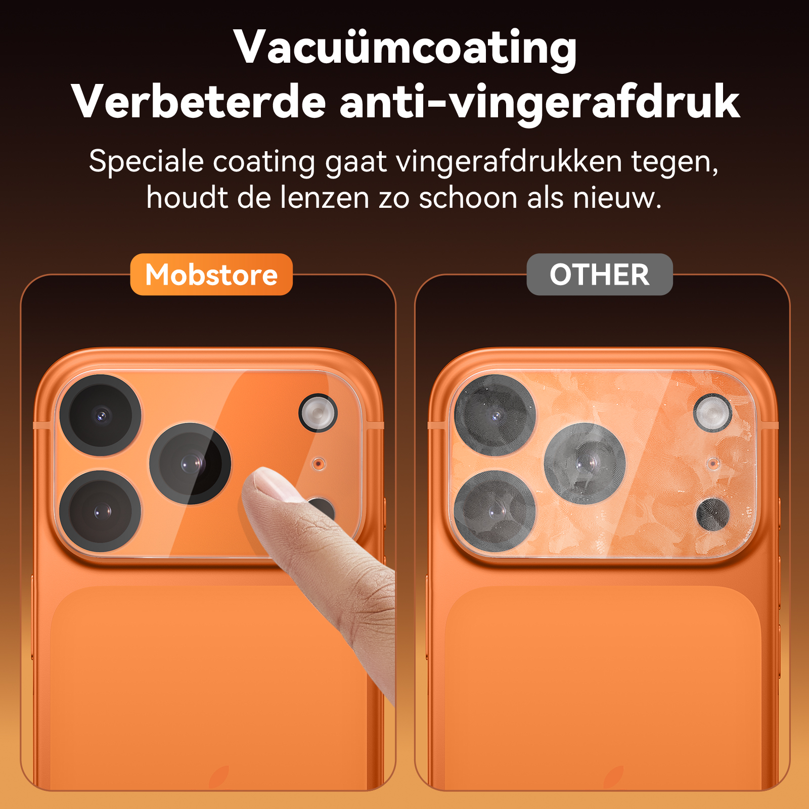 Deze gehard glas lens protector voor de iPhone 17 Pro Max beschikt over een speciale coating die vingerafdrukken en vlekken vermindert.